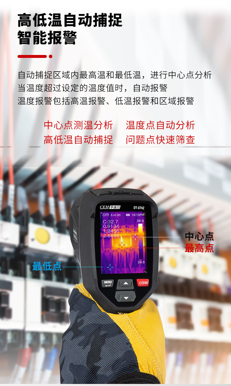 CEM華盛昌DT-874Z 紅外熱成像儀電力暖通巡檢儀設(shè)備檢修溫度篩查儀