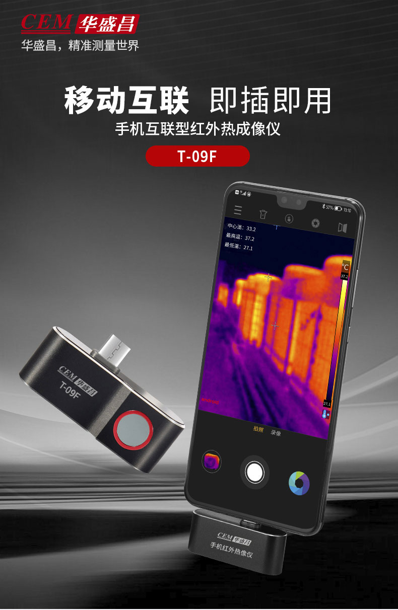 移動(dòng)互聯(lián)即插即用 手機(jī)互聯(lián)型紅外熱成像儀 T-09F