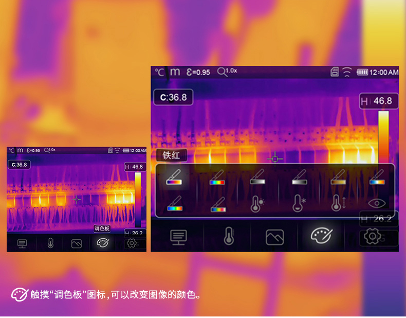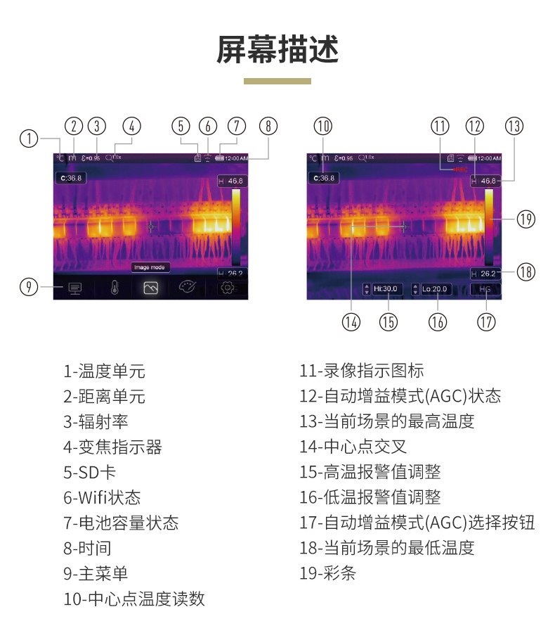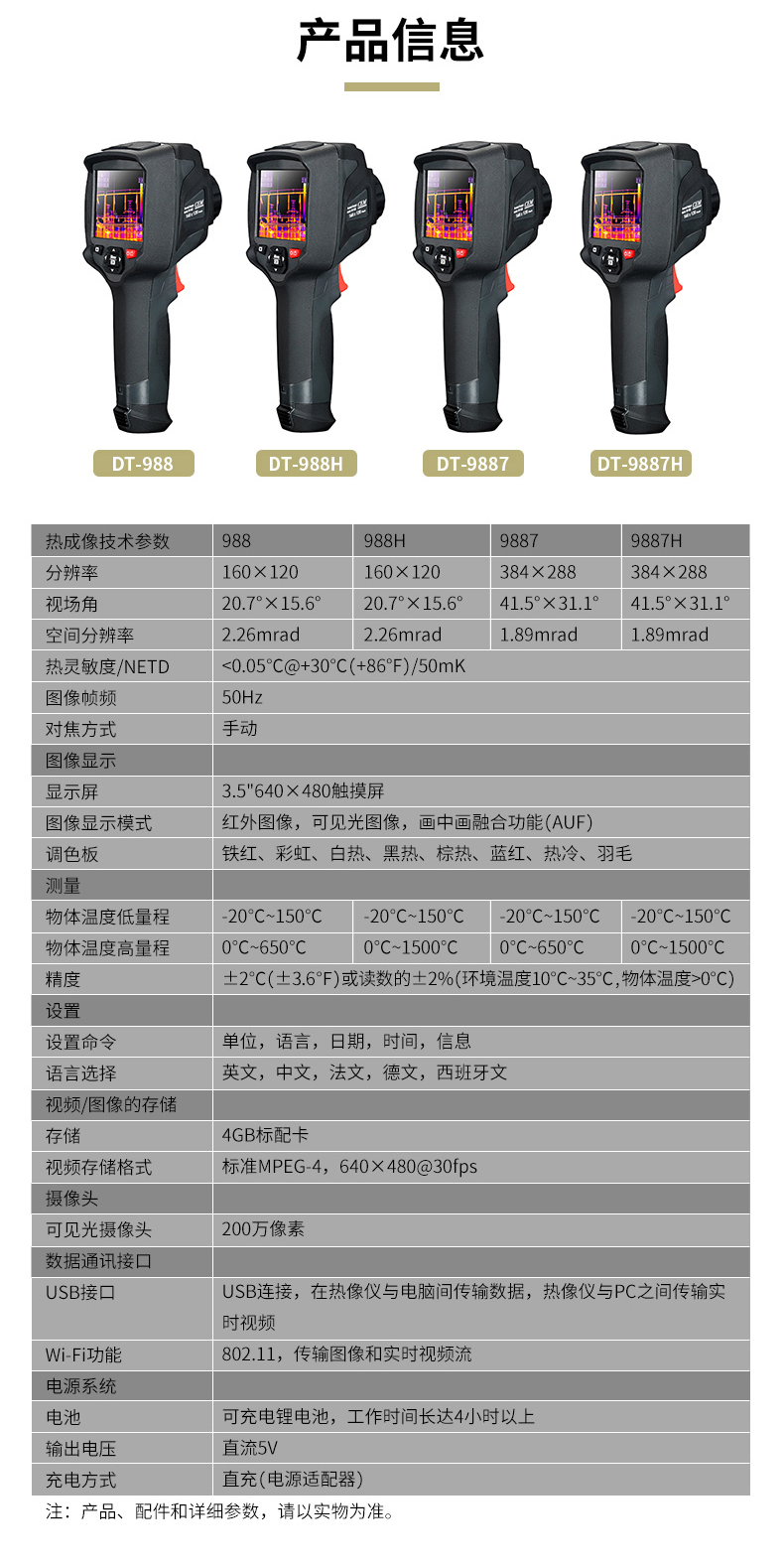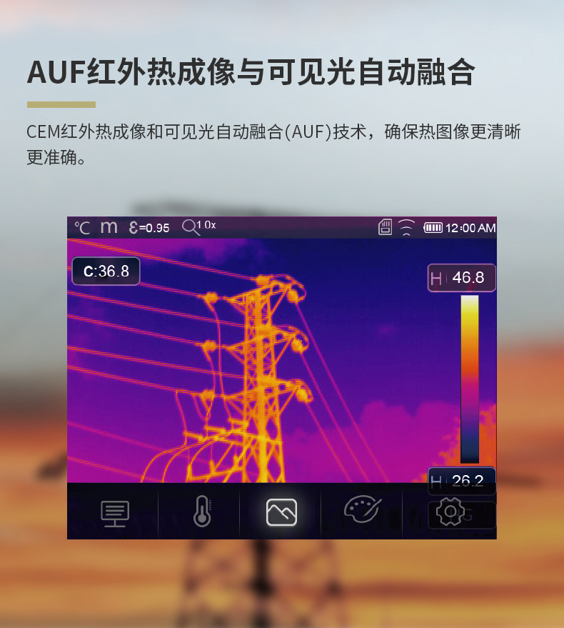 標(biāo)配鏡頭22mm,分辨率324×288,IFOV:1.14mard,視場(chǎng)角24.5×18.6°,熱靈敏度NETD<0.06℃,圖像幀頻50Hz,溫度范圍(-20-150、0-400),可見光分辨率640×480像素