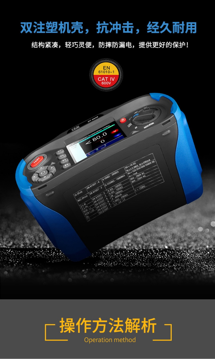 CEM DT-6650專業(yè)的多功能電氣綜合測(cè)試儀, 3.5"高清彩色TFT液晶顯示屏,雙注塑機(jī)殼,可測(cè)絕緣電阻、接地電阻、低電阻、回路電阻、電壓、RCD、PFG和PSC,并有配套軟件系統(tǒng),同時(shí)具有快速取樣、雙顯示、清晰的按鍵和大屏等優(yōu)點(diǎn),方便用戶簡(jiǎn)單清晰地操作,可以確保電氣裝置在家庭、商業(yè)、工業(yè)等領(lǐng)域應(yīng)用的安全性,以及固定接線安裝的安全性和準(zhǔn)確性,是電力電氣領(lǐng)域的專業(yè)電力檢驗(yàn)工具。