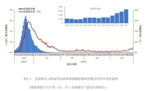從中國疾病預(yù)防控制中心發(fā)布的數(shù)據(jù)來看,目前陽性案例確實(shí)在增加,但總數(shù)仍較少。國內(nèi)12月-1月感染高峰之后,新冠病毒并沒有完全消失,而是維持著低于1%的檢測(cè)陽性率。而近期,新冠陽性人數(shù)和檢測(cè)陽性率都有上升趨勢(shì),4月27日檢測(cè)陽性率為4.4%。