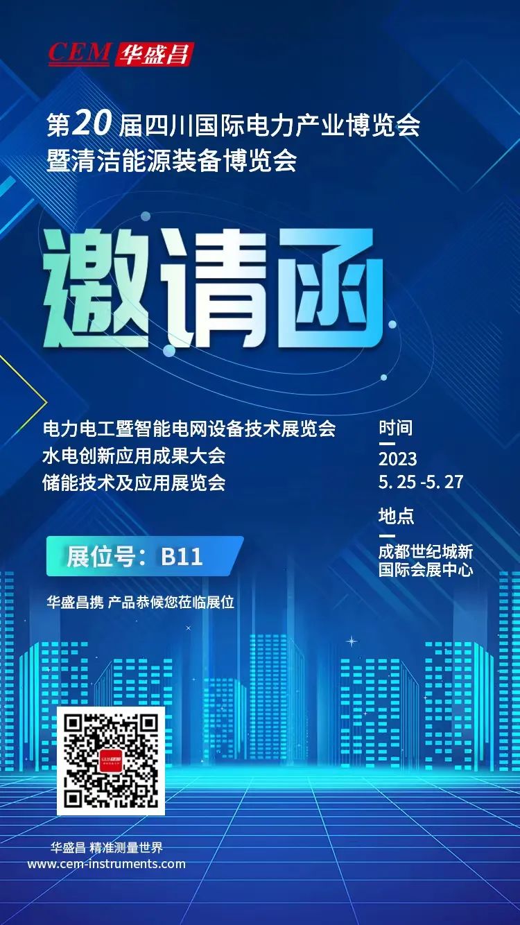 2023年5月25—27日,一年一度的電力能源行業(yè)盛會——第二十屆四川國際電力產業(yè)博覽會暨清潔能源裝備博覽會將在成都世紀城新國際會展中心舉行。華盛昌將攜旗下多款電子電力檢測儀器亮相B11展位。