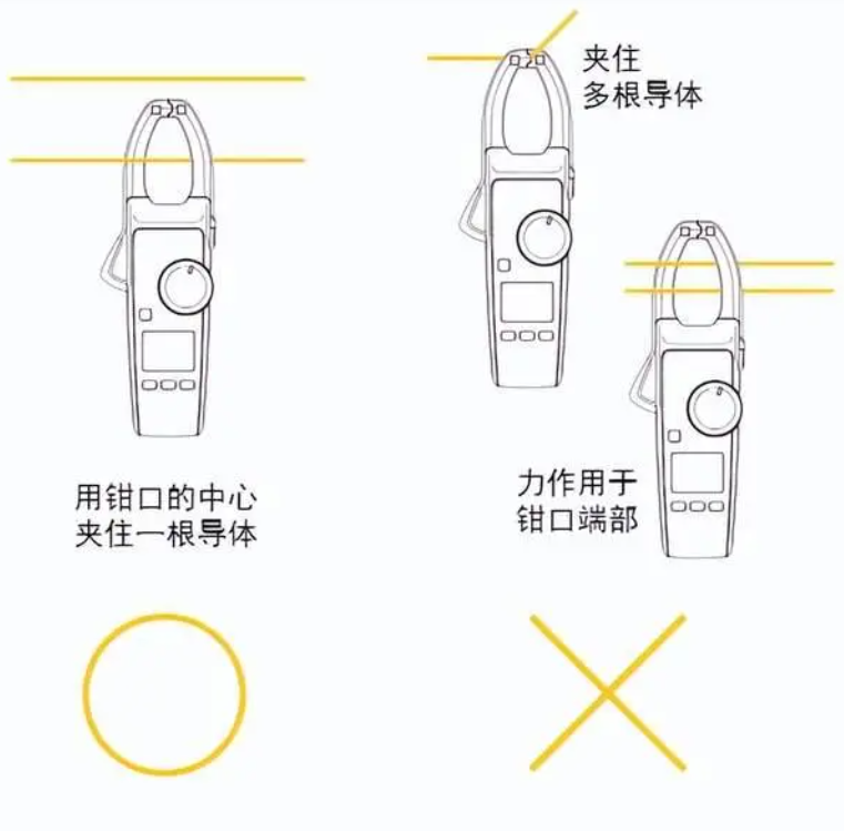 測(cè)量的載流導(dǎo)體有些是不規(guī)則的,鉗口太小,開(kāi)口處不能緊閉會(huì)引起極大的誤差;鉗口太大,測(cè)量時(shí)不容易將載流體放置在鉗口中心,也將引起測(cè)量誤差。