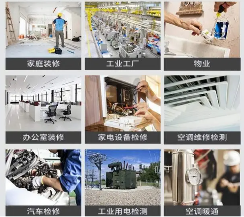 3. 用于家庭或辦公室裝修、物業(yè)維修、家電設(shè)備檢修、汽車檢修、工業(yè)用電檢測(cè)等場(chǎng)景。